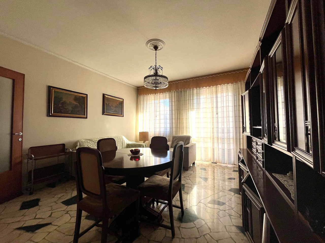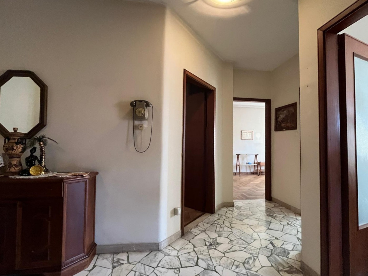 La zona notte offre due camere spaziose con parquet ben tenuto; il bagno finestrato garantisce ottima areazione naturale.
