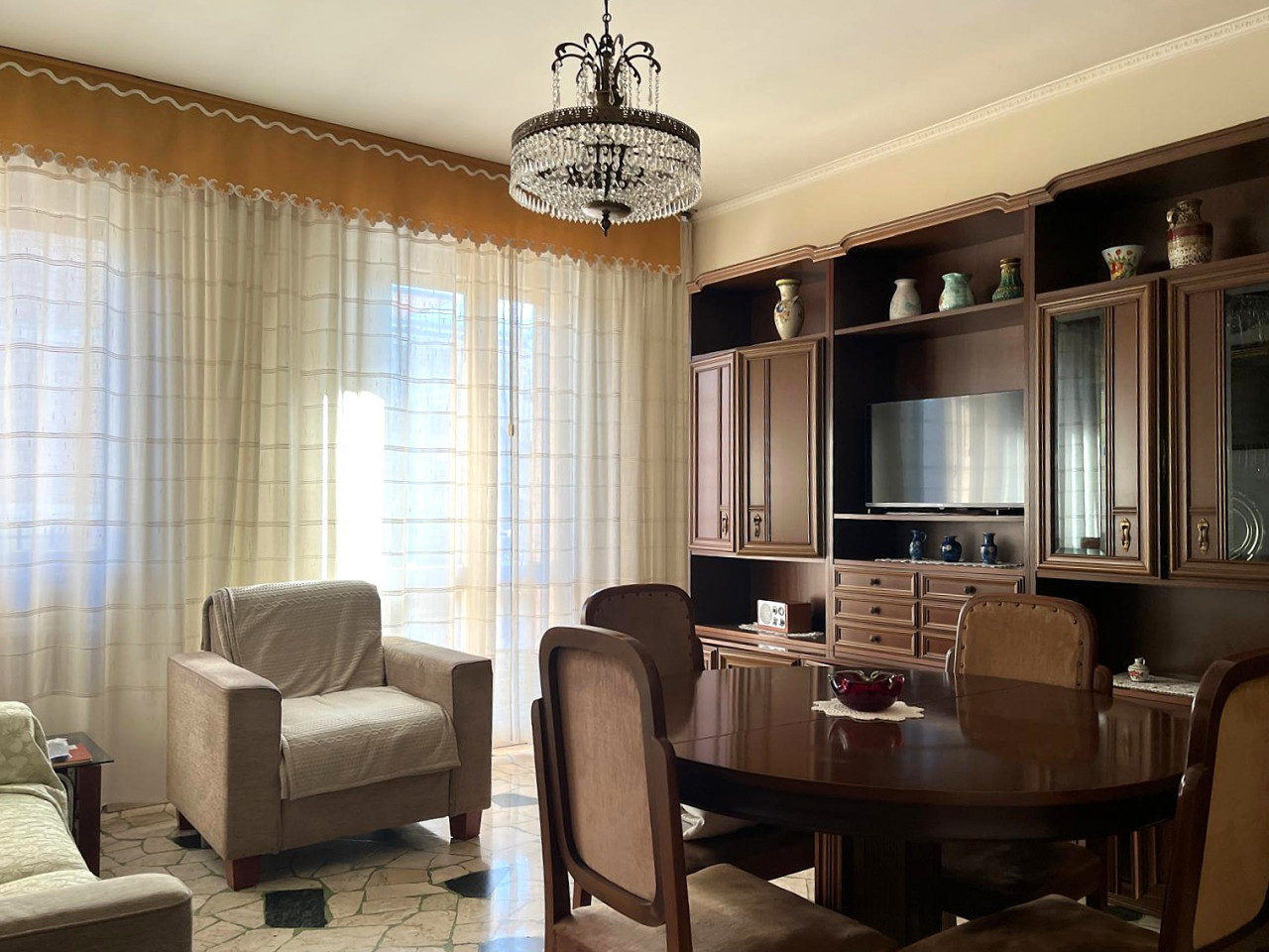 L'appartamento si sviluppa su unico piano per una superficie totale di circa 120 mq ed è composto da ingresso ampio e luminoso che conduce ad un accogliente soggiorno illuminato da grandi vetrate, ideale per momenti conviviali o relax. Il cucinino presenta spazi funzionali e la possibilità di personalizzazione secondo le proprie esigenze.